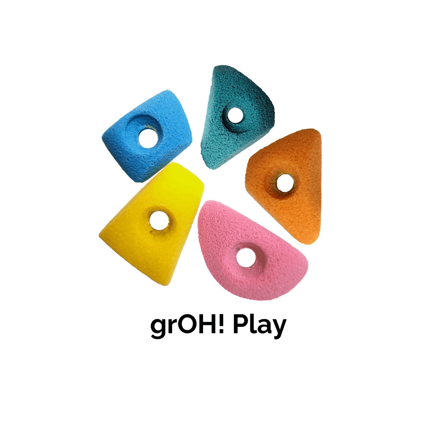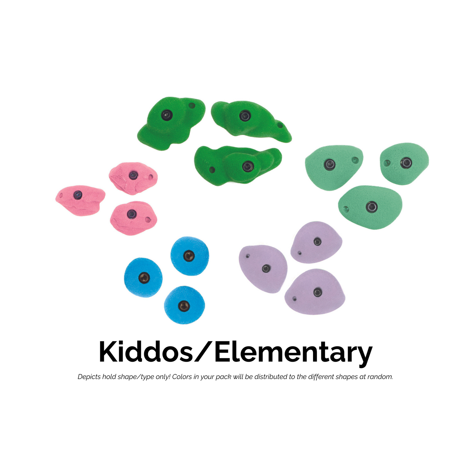 Elevate the climbing experience with the Kiddos/Elementary Pack, featuring a mix of footholds, pinches, and jugs, grOH! MY!