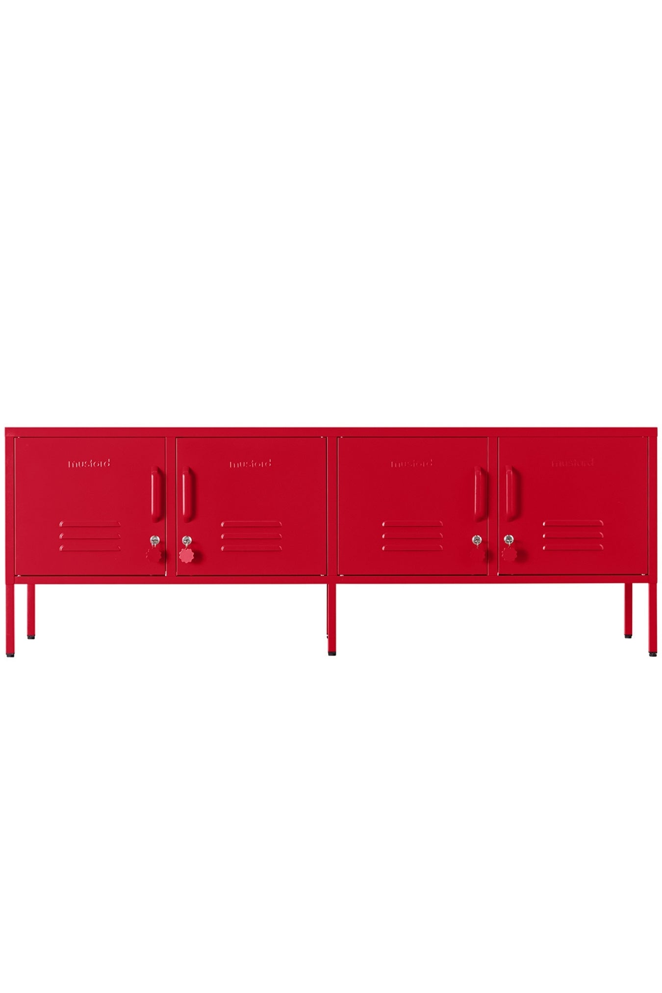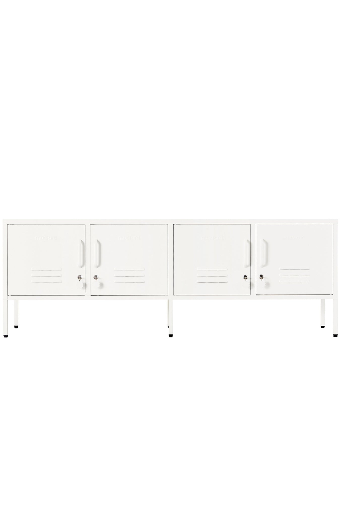 Meet our long + lean four door locker. She’s the ultimate multitasker and your one-stop for storage, whether you use her as a TV unit, entertainment hub, shoe organizer or at the foot of your bed. With two cable holes to keep things tidy and a lock on every door, she’s a console with confidence.