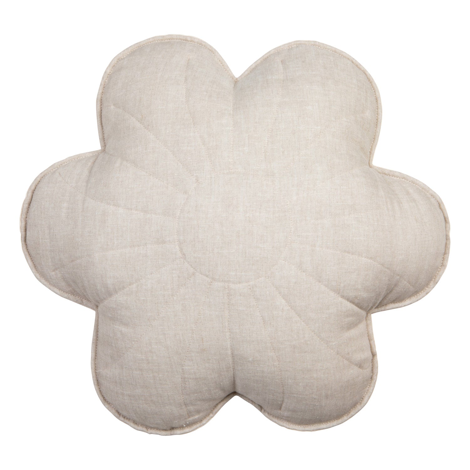 This fluffy flower-shaped cushion is carefully sewn from high-quality soft cotton and  linen fabric. The muted tone is inspired by the natural colors of plants making it especially compatible with light, pastel interiors.