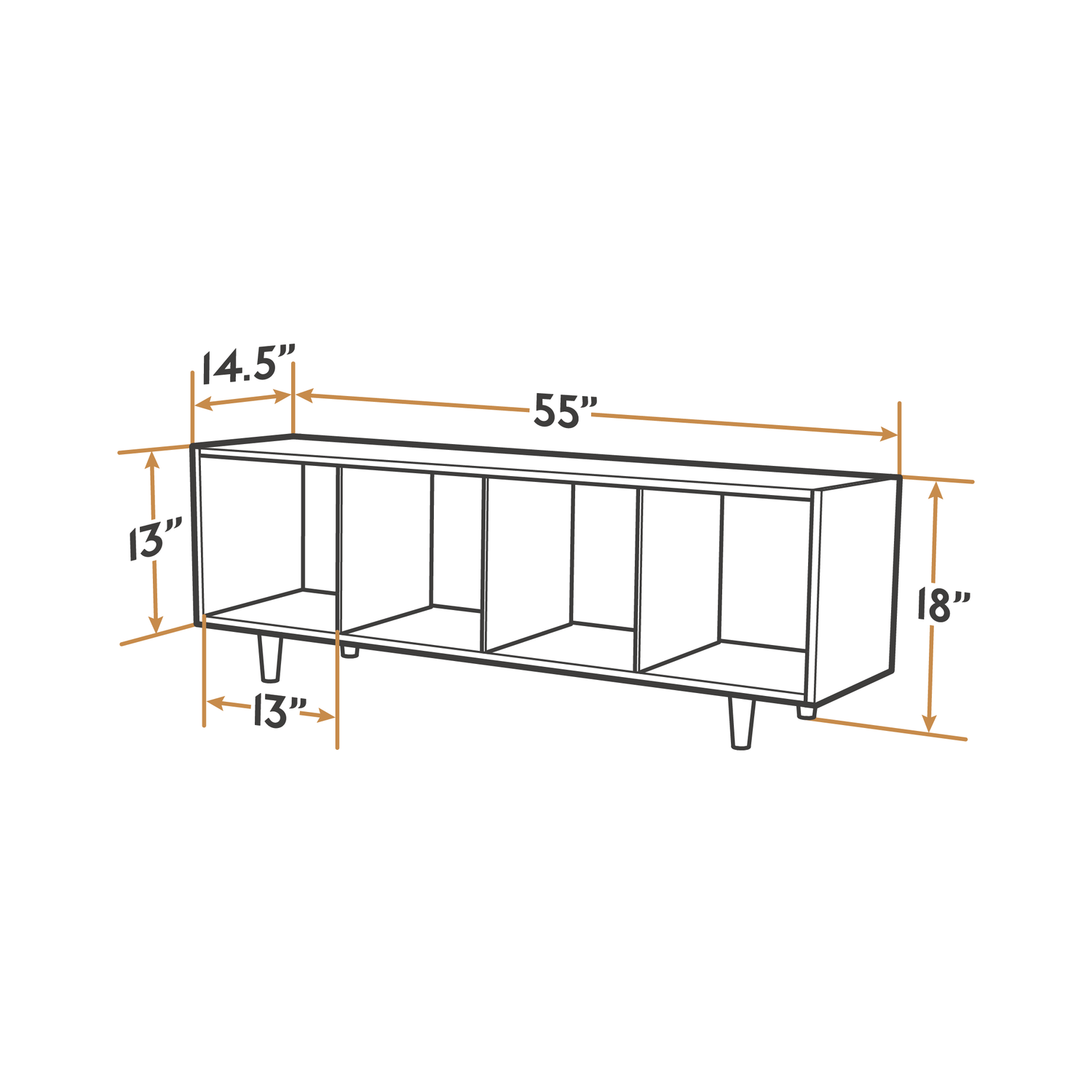 4 Cubes: 54.86"W x 14.5"L x 18"H