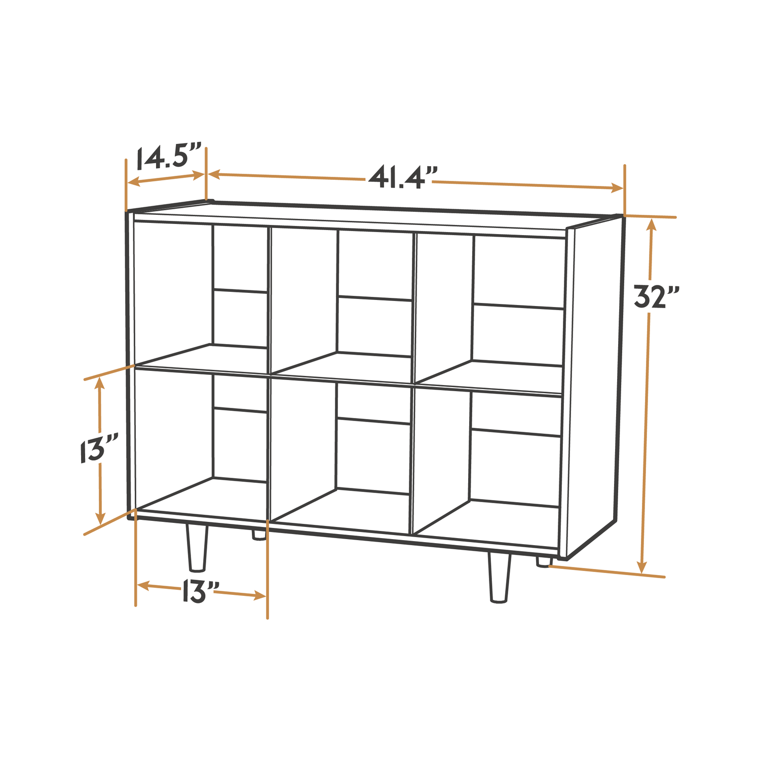 6 Cubes: 41.38"W x 14.5"L x 32"H