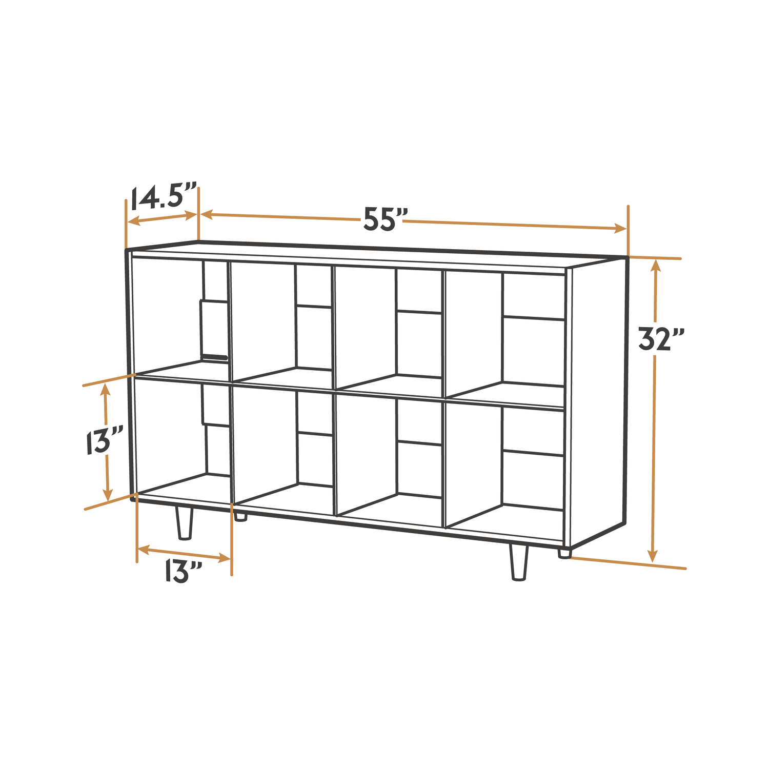 8 Cubes: 54.86"W x 14.5"L x 18"H