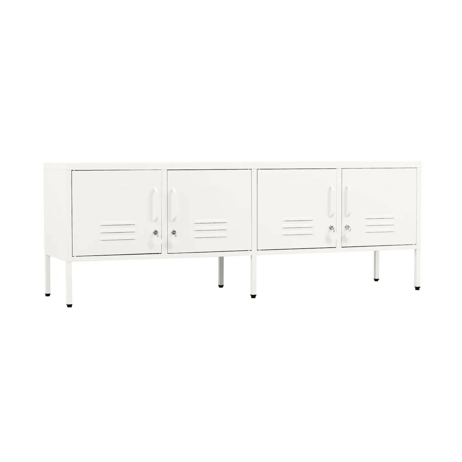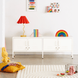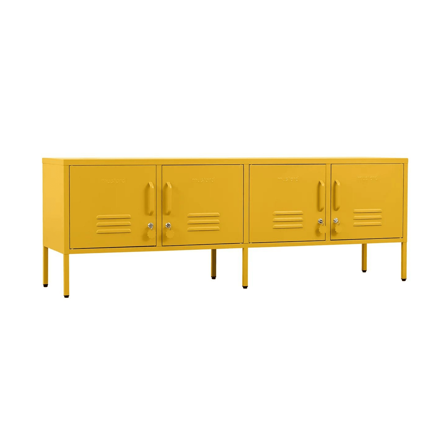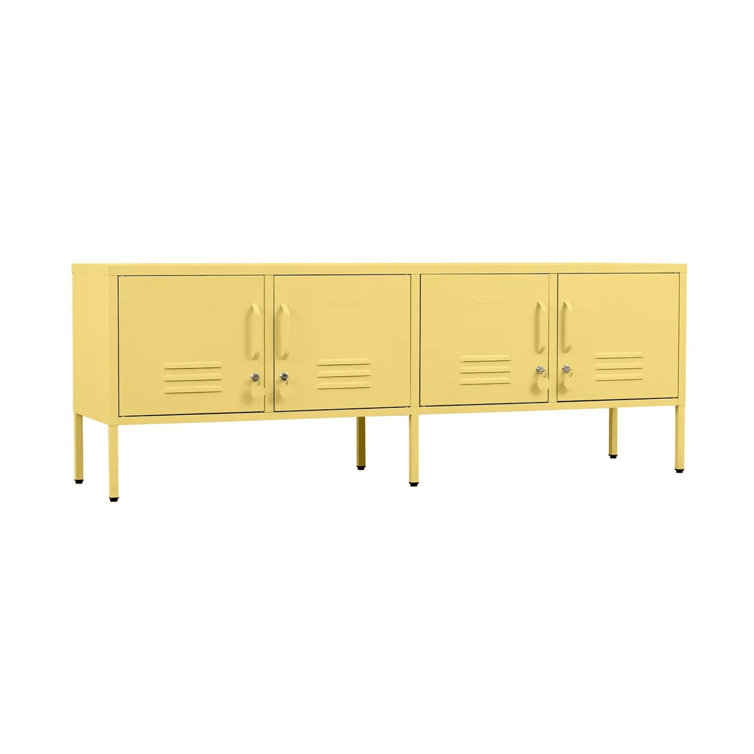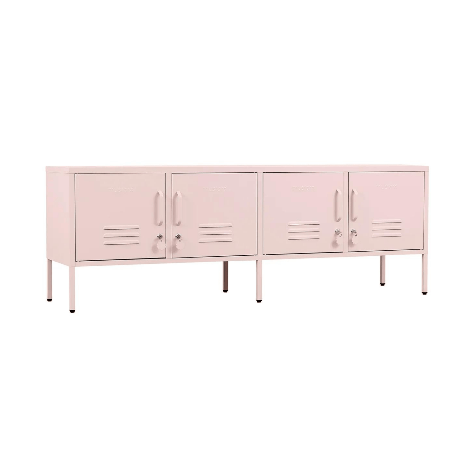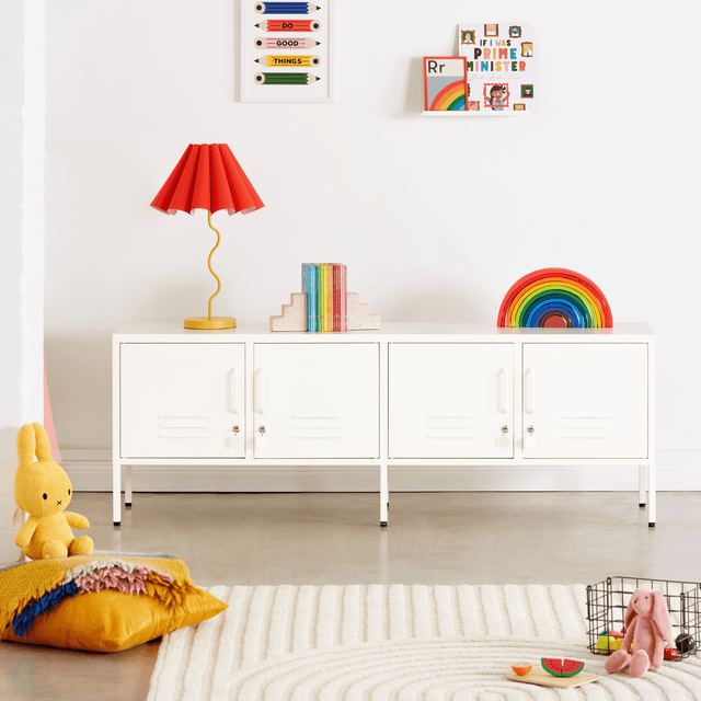 Meet our long + lean four door locker. She’s the ultimate multitasker and your one-stop for storage, whether you use her as a TV unit, entertainment hub, shoe organiser or at the foot of your bed. With two cable holes to keep things tidy and a lock on every door, she’s a console with confidence.
