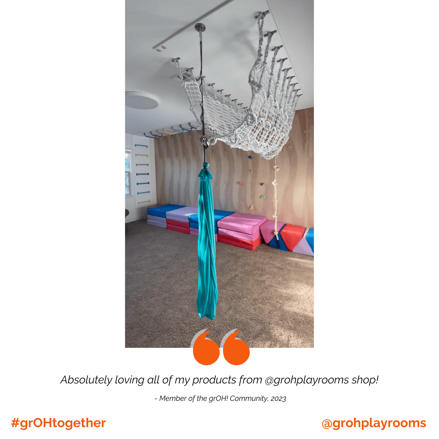 Take your playroom to the next level with a rope tunnel. Perfect for cool crawling, lazy lounging and super swinging! Look out…it may just become your favorite playroom feature!!