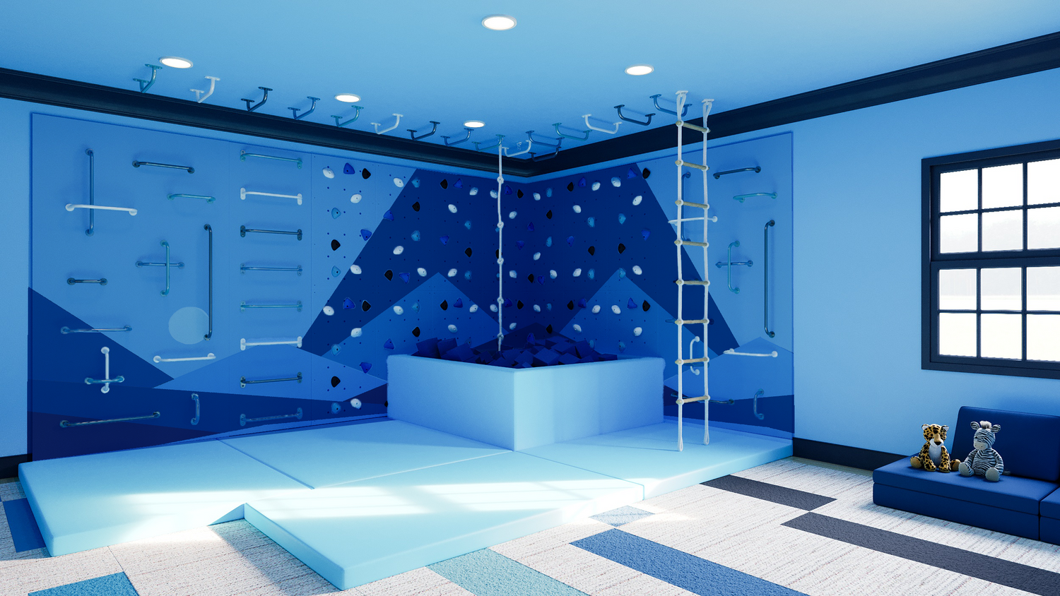 - - Climbing panels, crash mats, and swing option